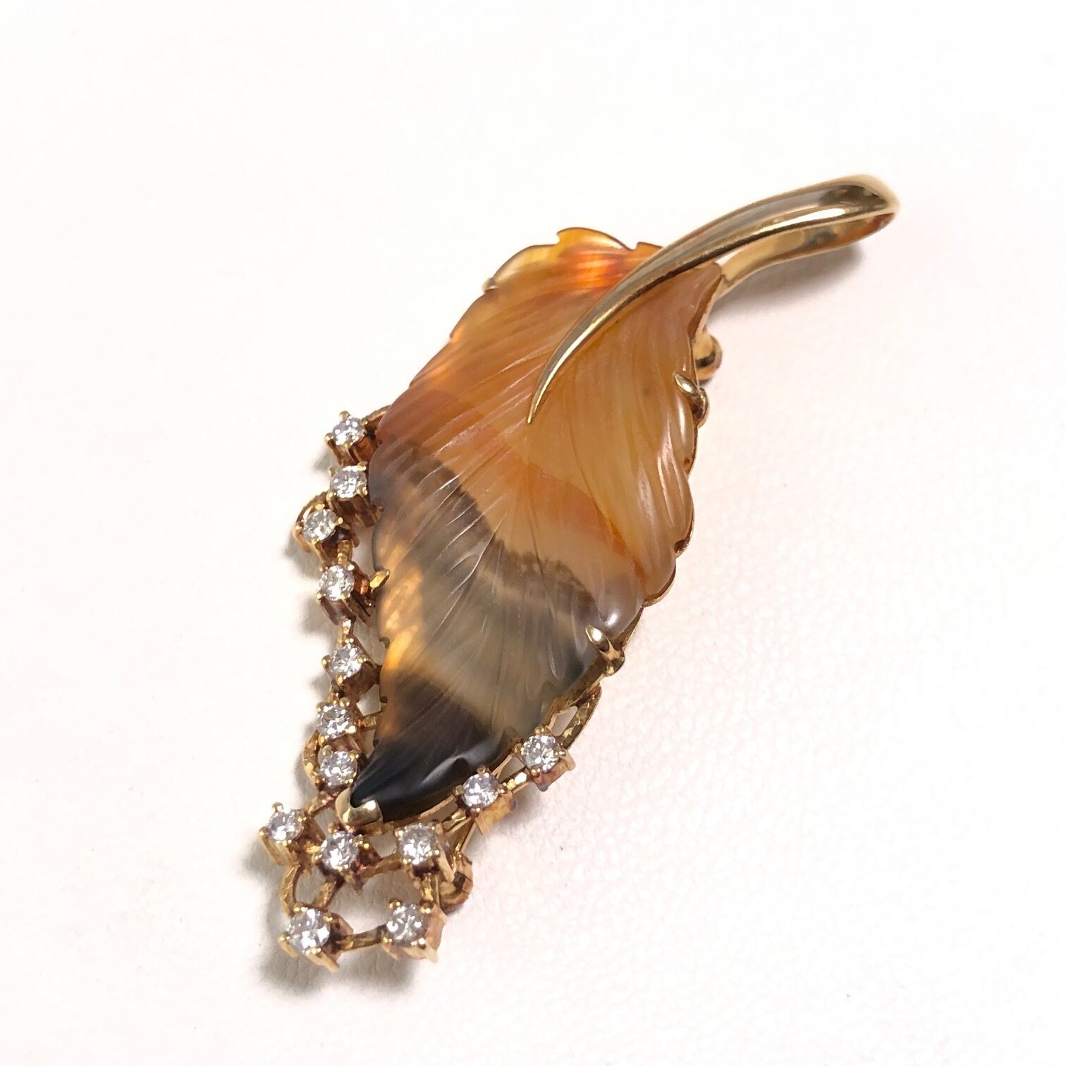 商品:jewelry K18 クォーツ ダイヤモンド0.45ct リーフデザイン イエローゴールド ブローチ ペンダントトップ