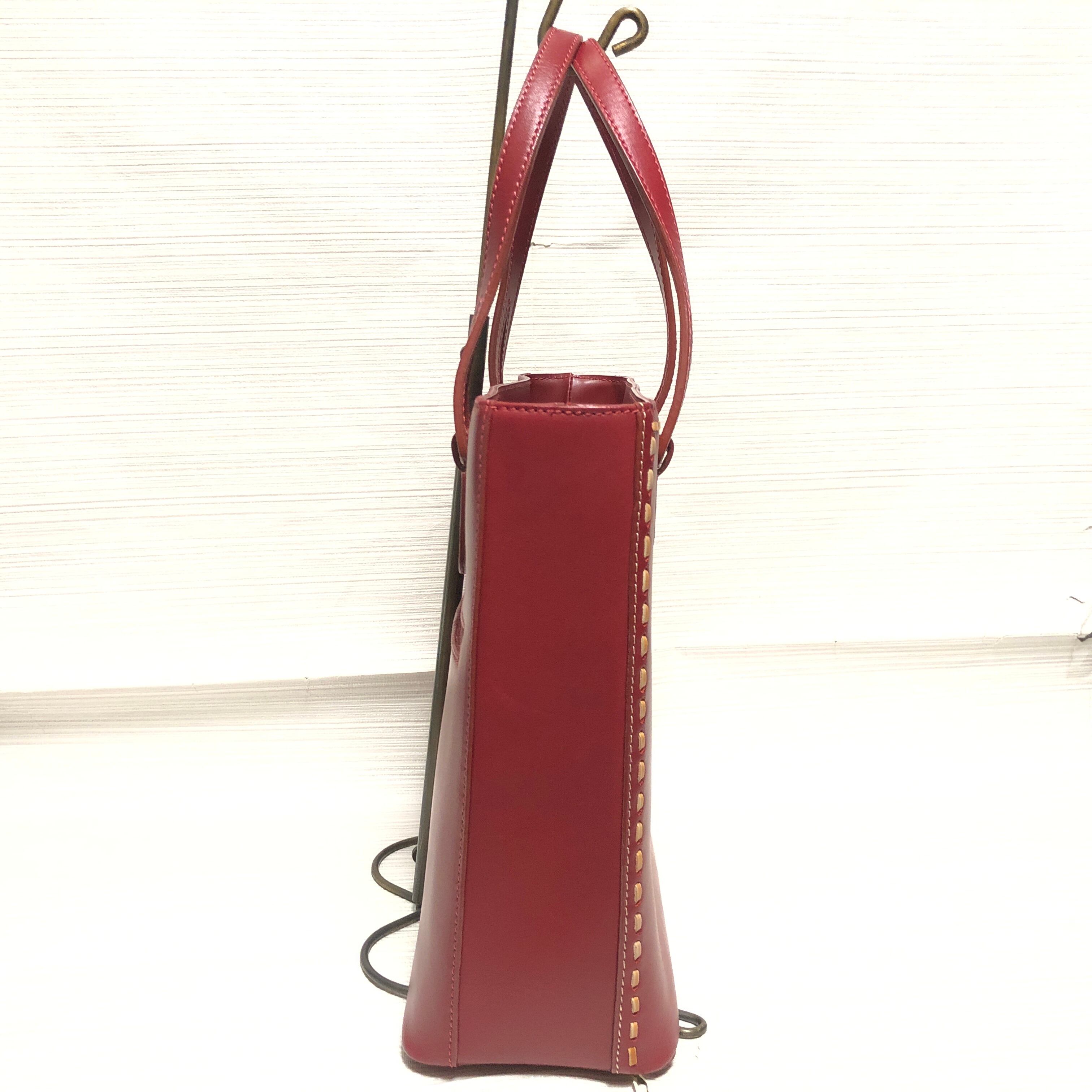 状態:バッグそこのビス部分に僅かにコキズが見受けられます。またレザー部分にひっかき傷がところどころに見受けられます。角部分のスレや持ち手部分の汚れなどは見受けられません。持ち手部分に若干収納跡がございます。ステッチ部分の若干の変色が見受けられます。内側部分の汚れやキズは見受けられません。