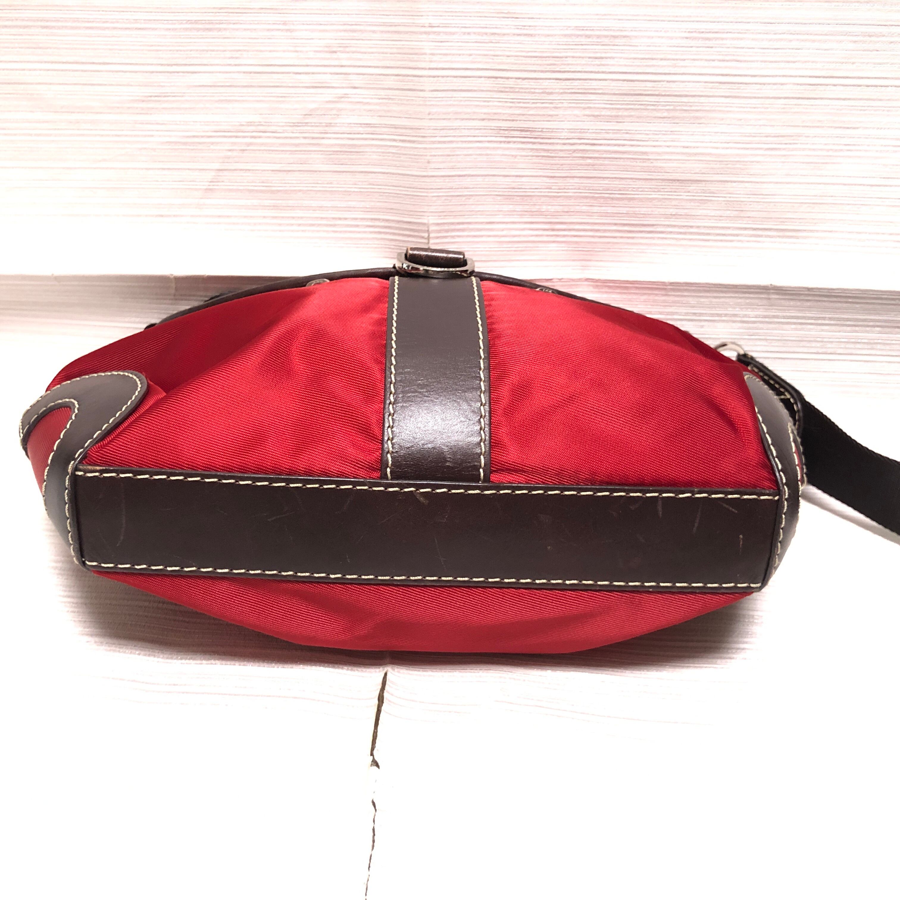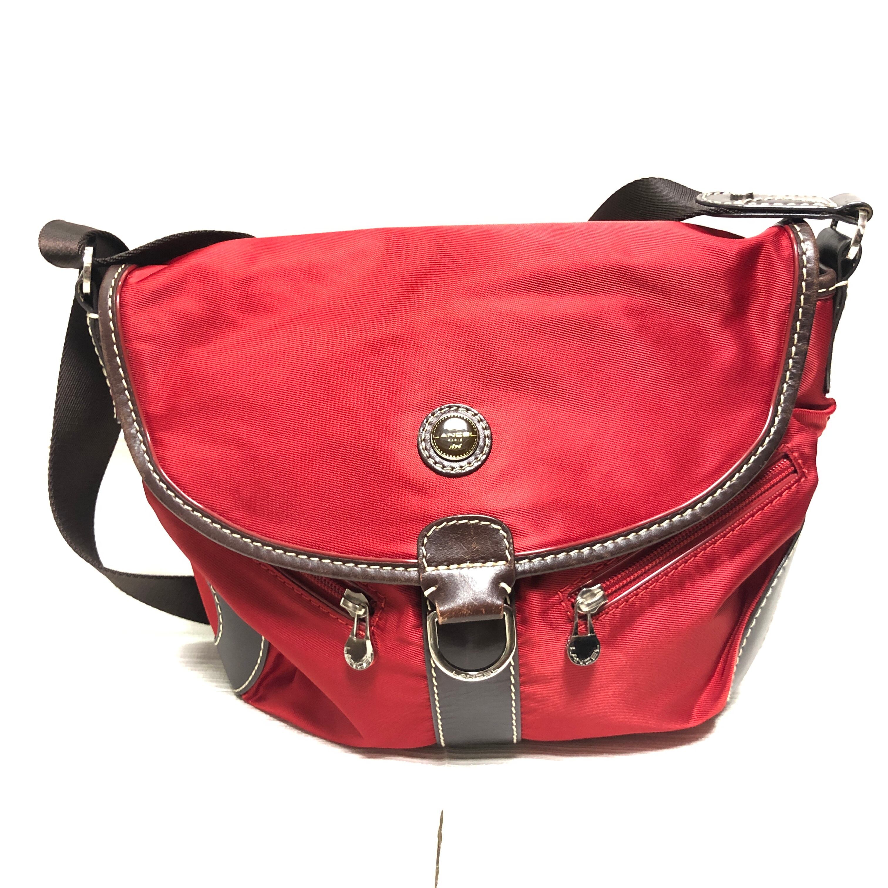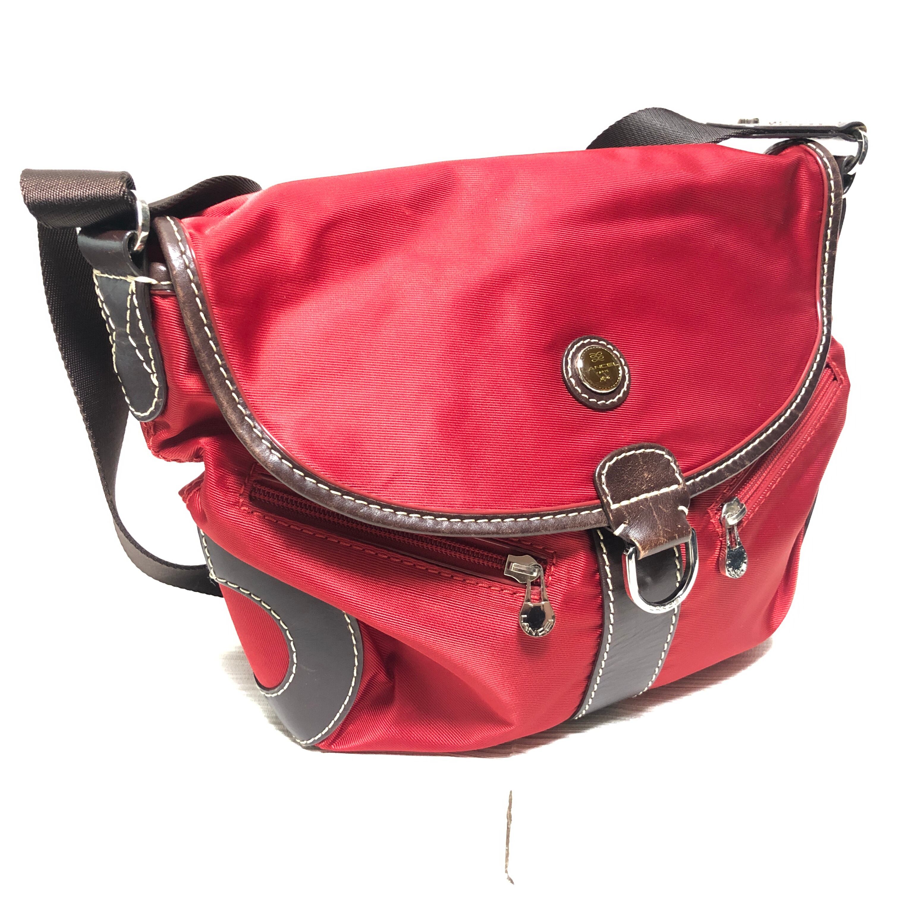 LANCEL ランセル ナイロン×レザー レッドカラー ショルダーバッグ カジュアル 大きめバッグ