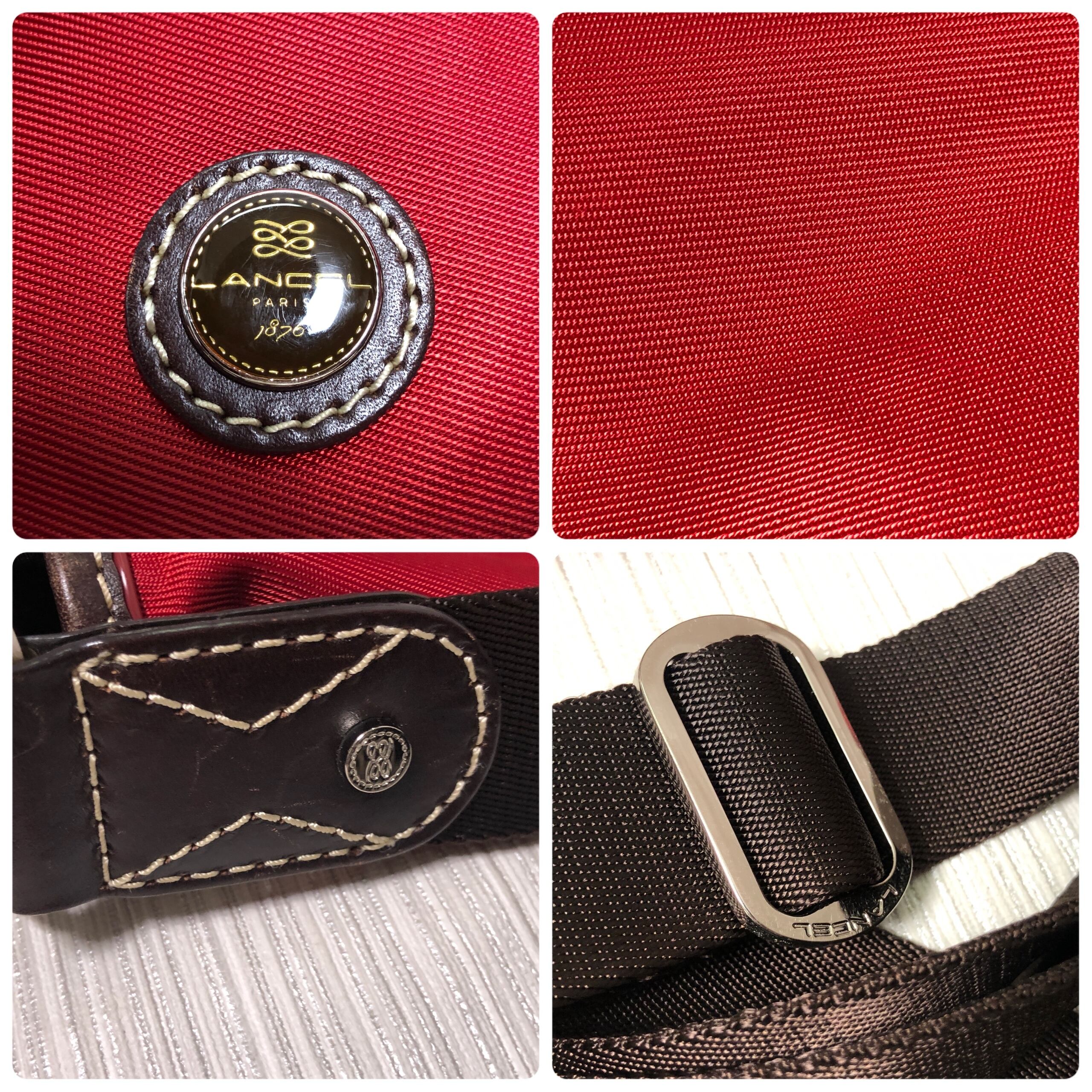 商品:LANCEL ランセル ナイロン×レザー レッドカラー ショルダーバッグ カジュアル 大きめバッグ