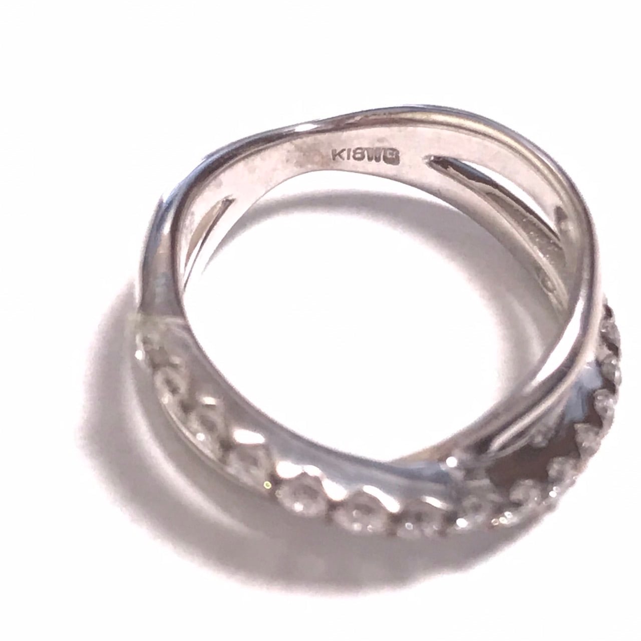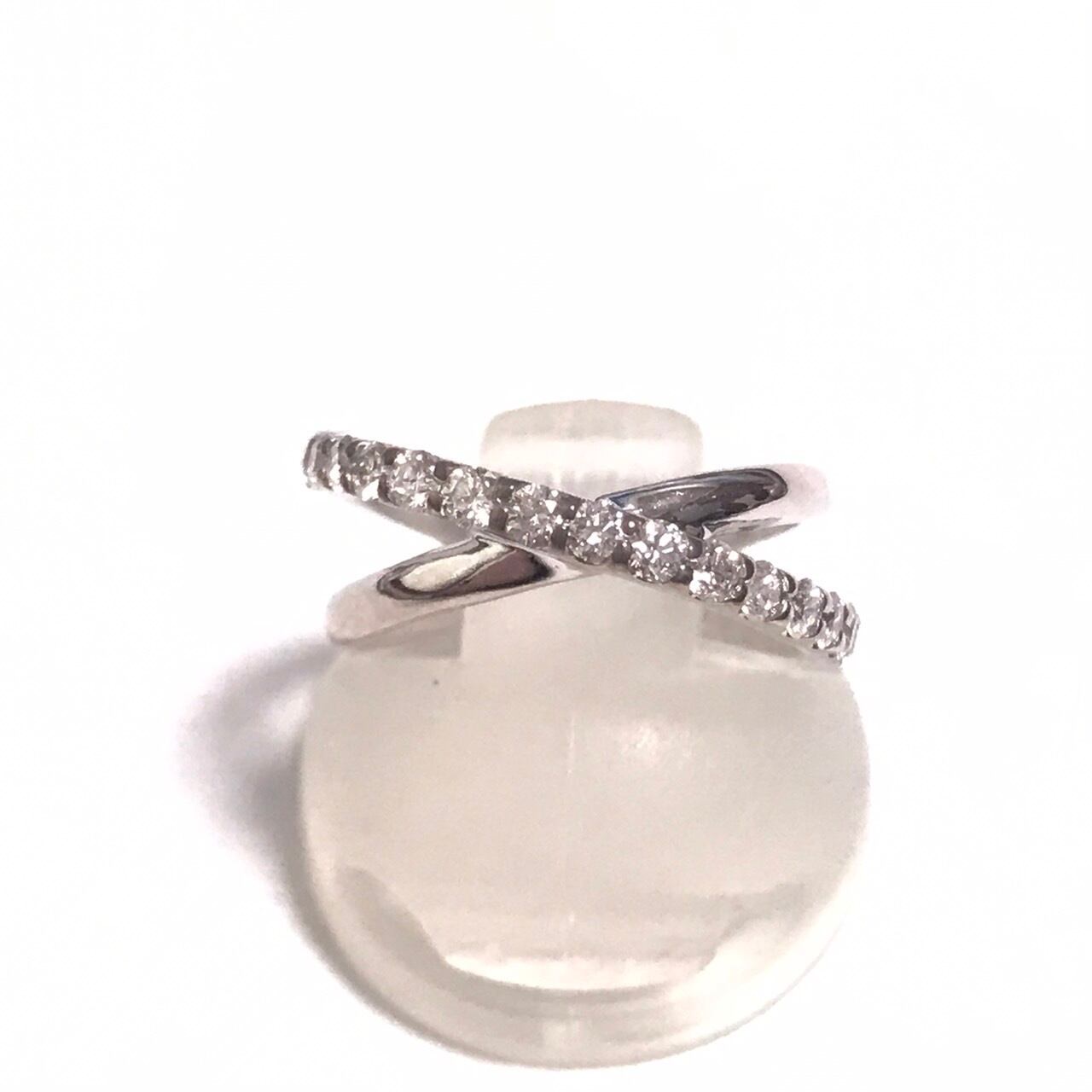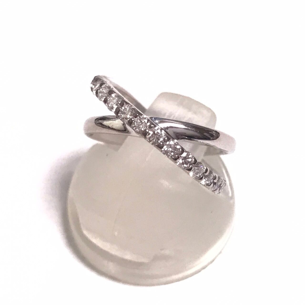 商品:磨き済み K18WG ダイヤモンド0.38ct クロスデザイン ピンキーリング #4 ホワイトゴールド