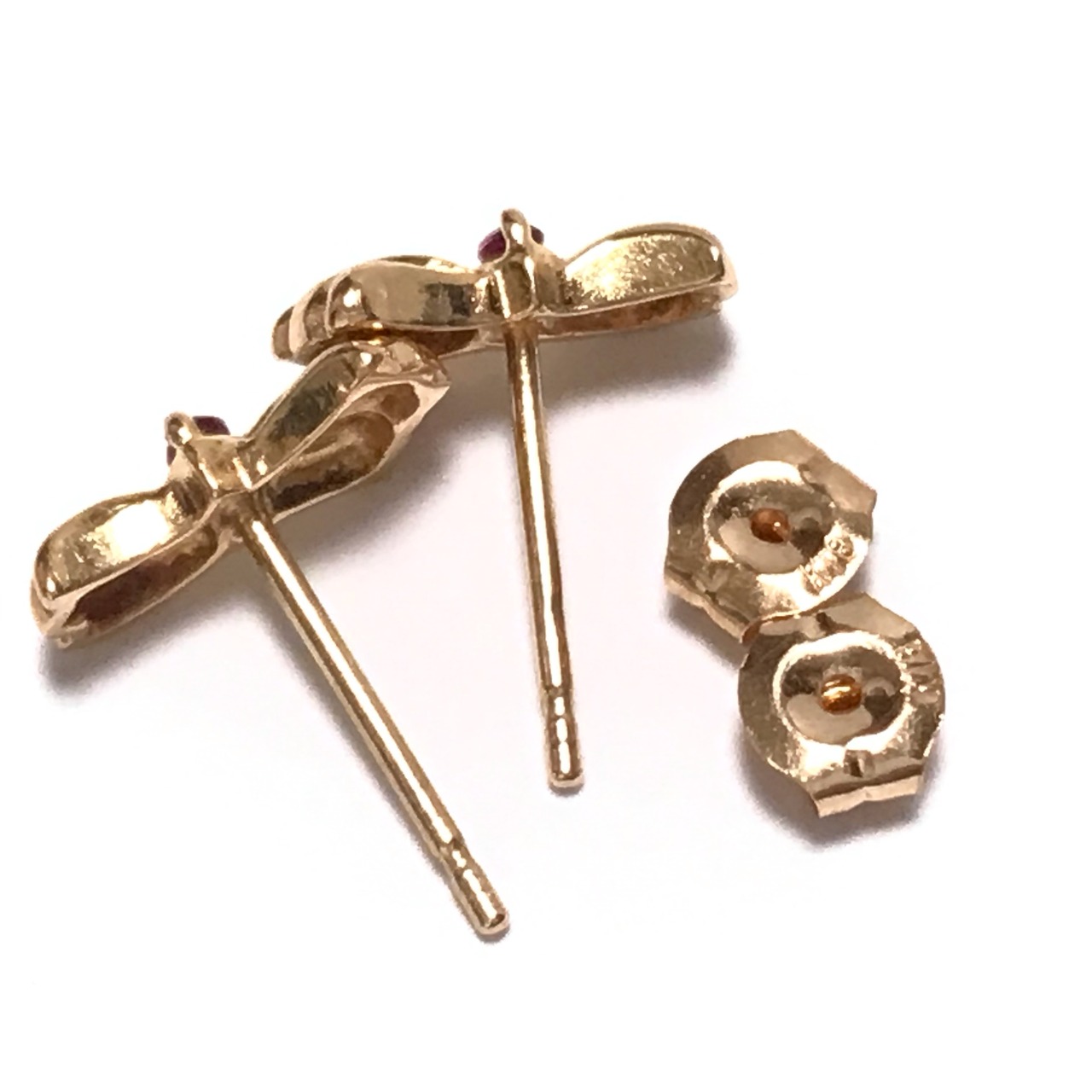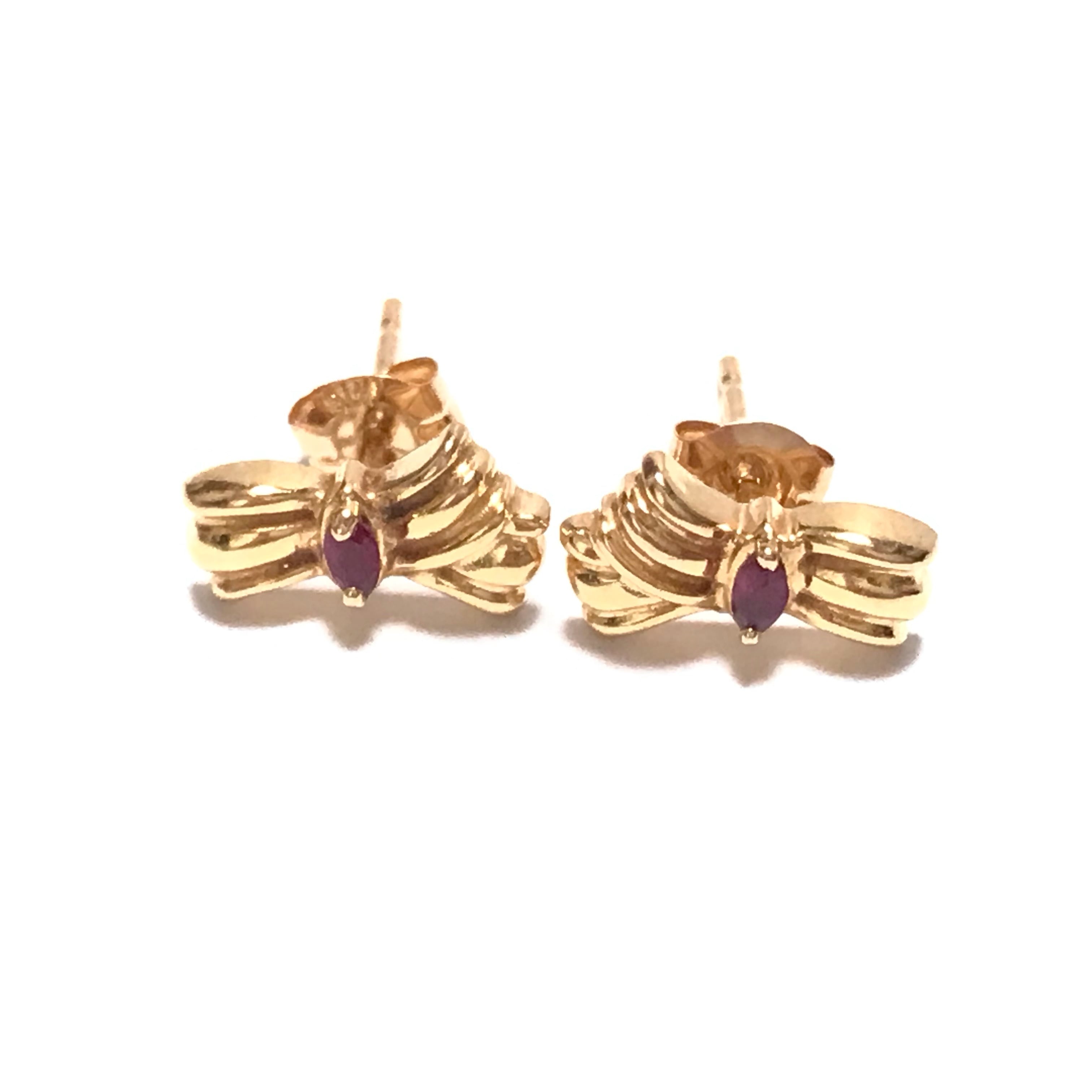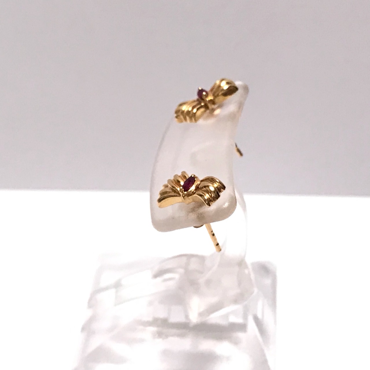 K18 ルビー リボンモチーフ イエローゴールド ピアス キャッチ式