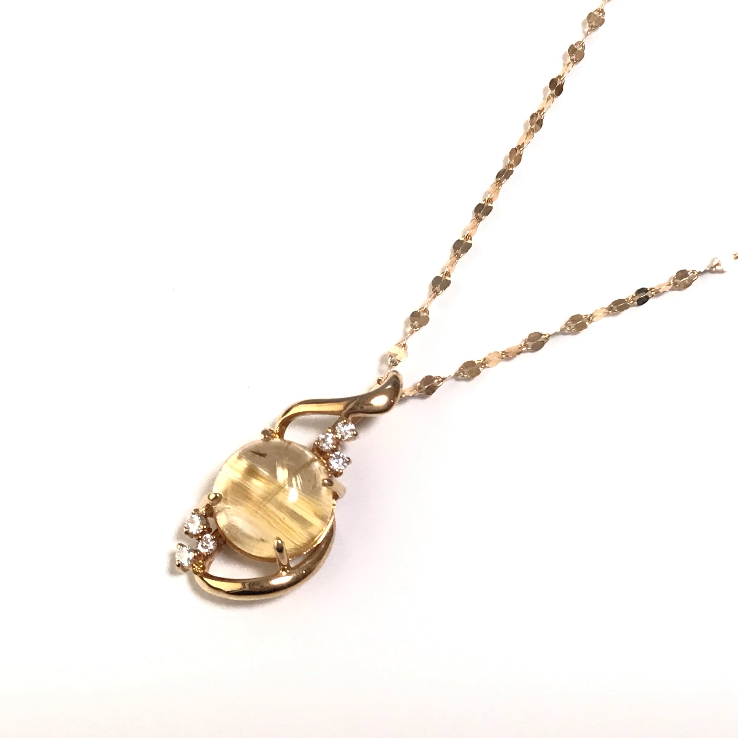 説明:ルチルクォーツがあしらわれたネックレスです。ダイヤモンドもあしらわれ、綺麗なネックレスです。