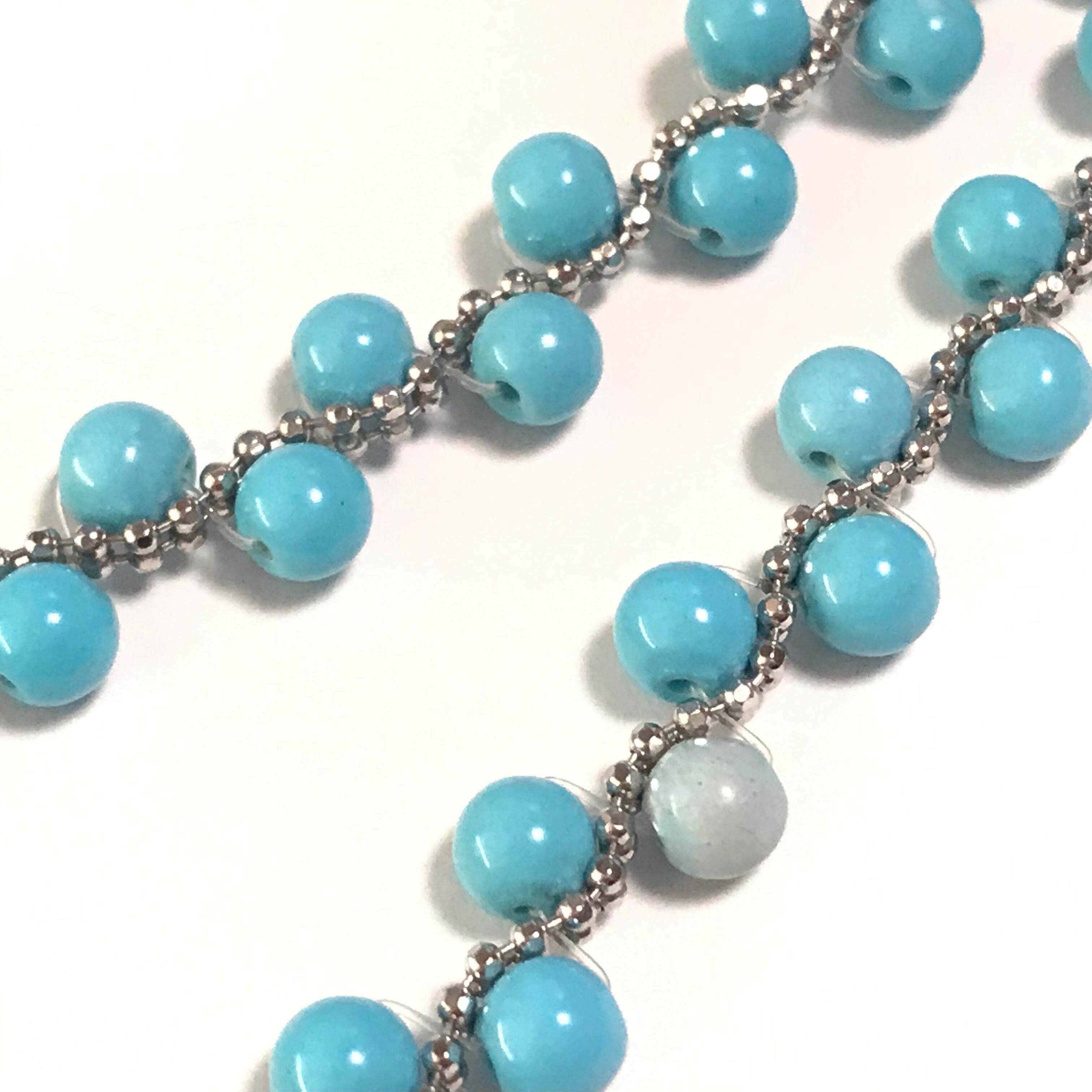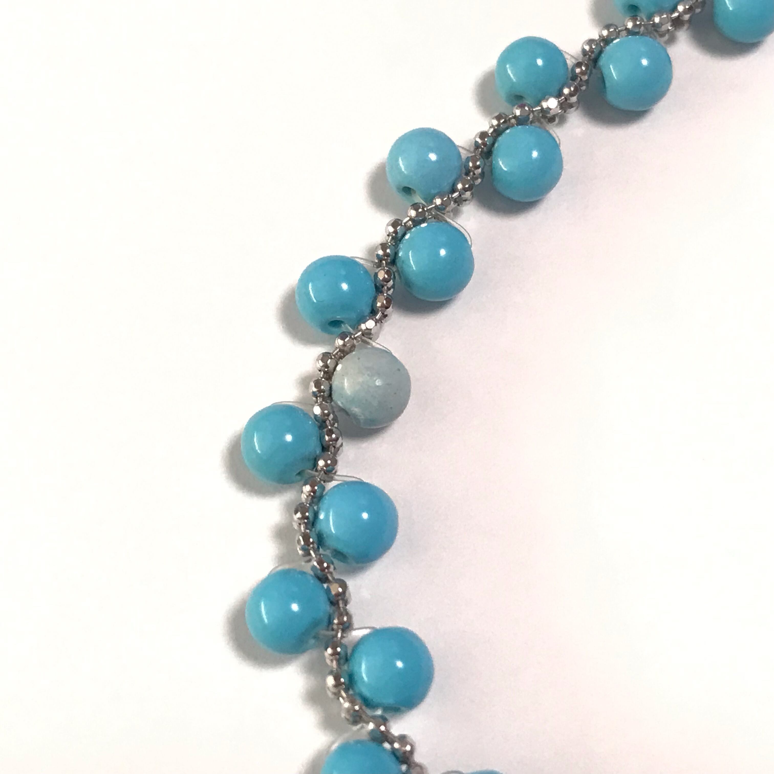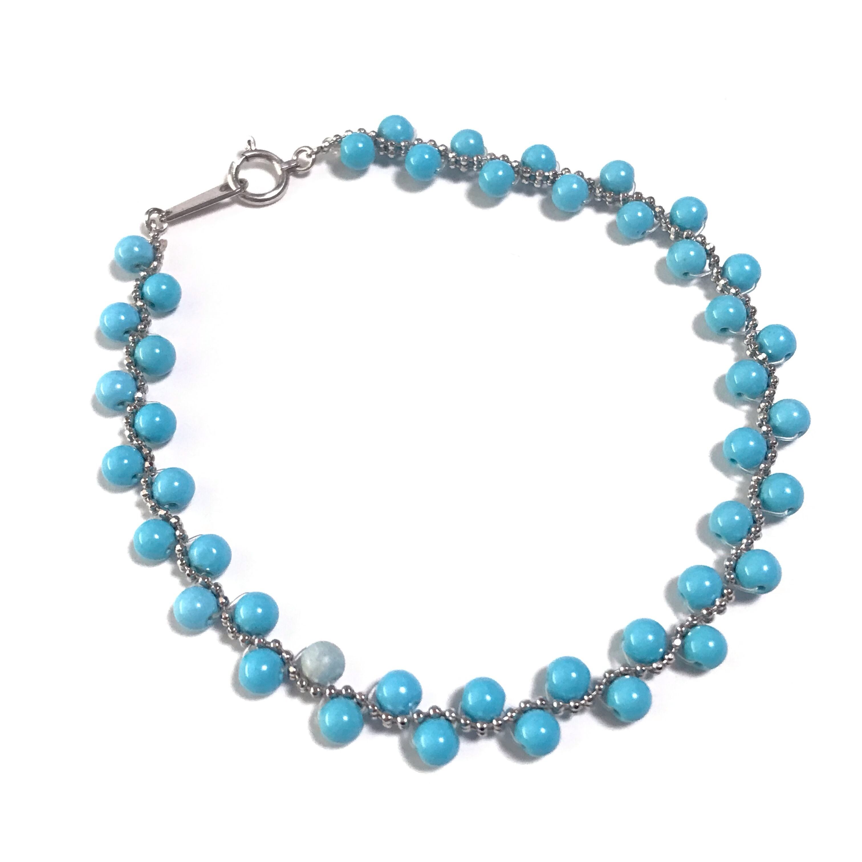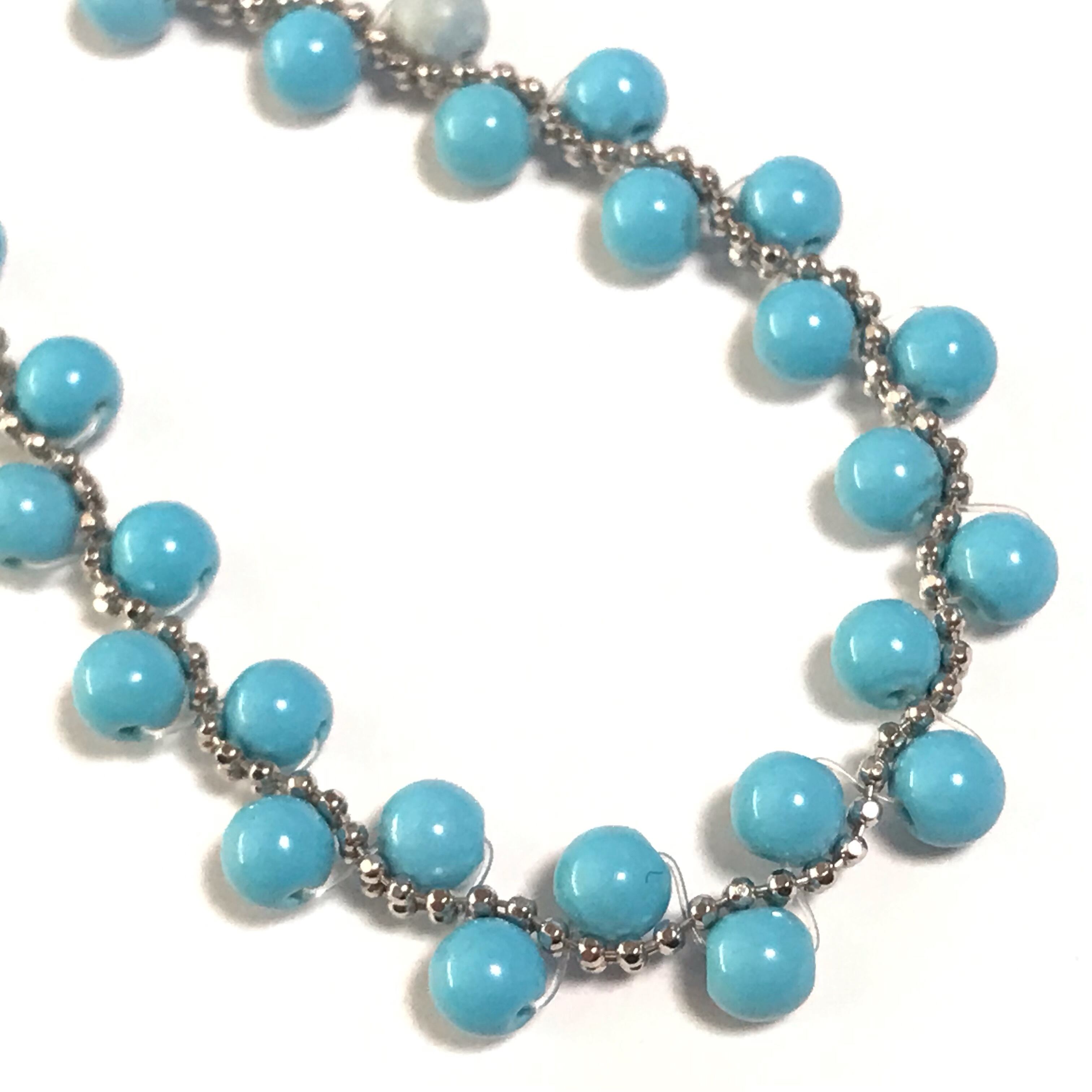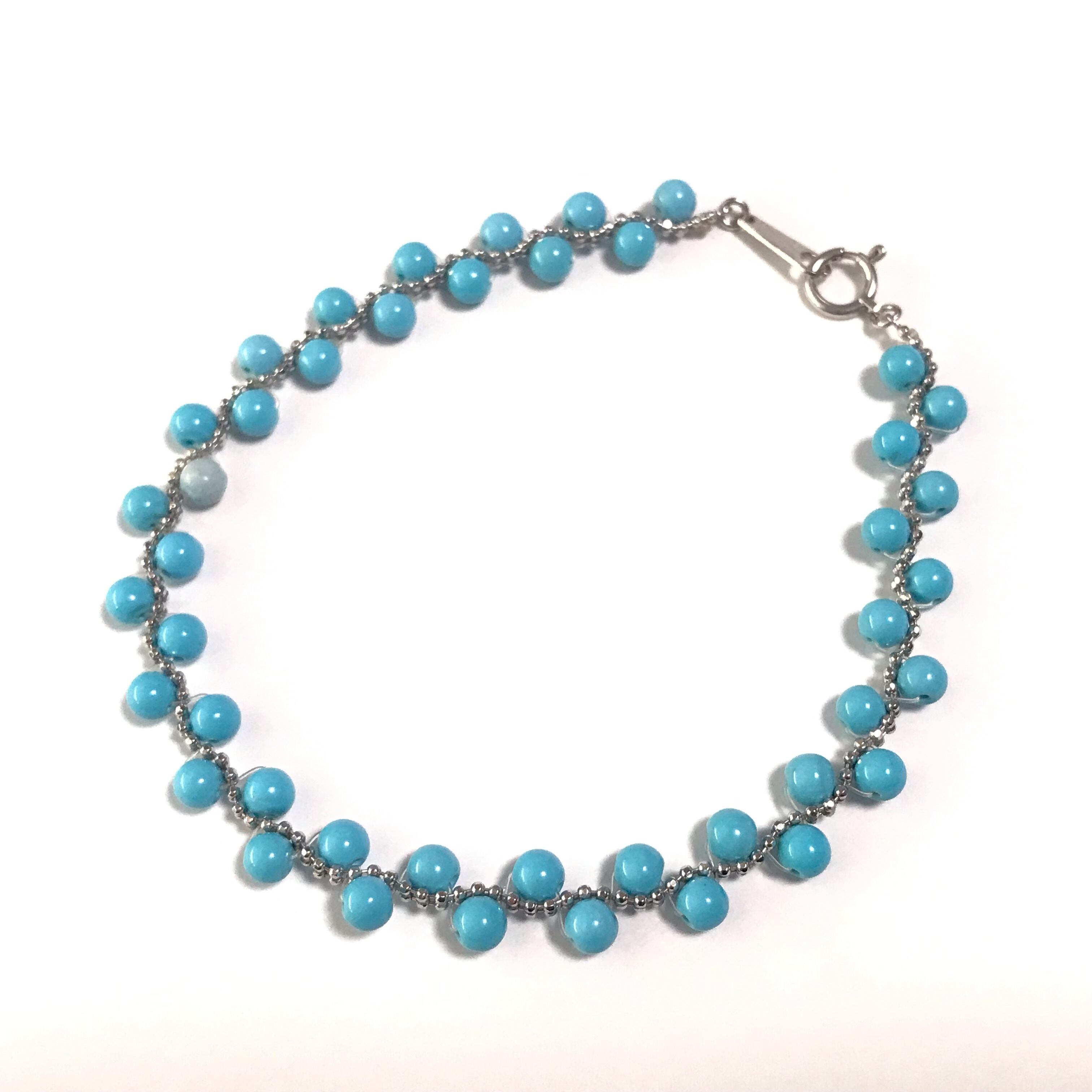 小さな丸いターコイズが並べられた可愛いブレスレットです。