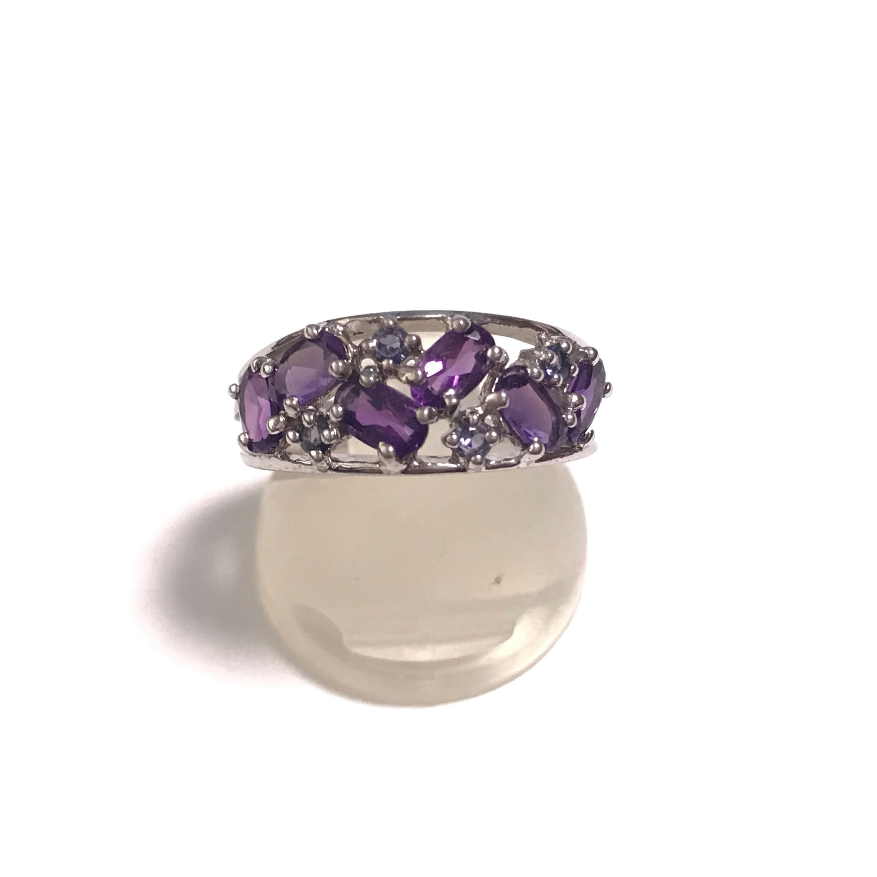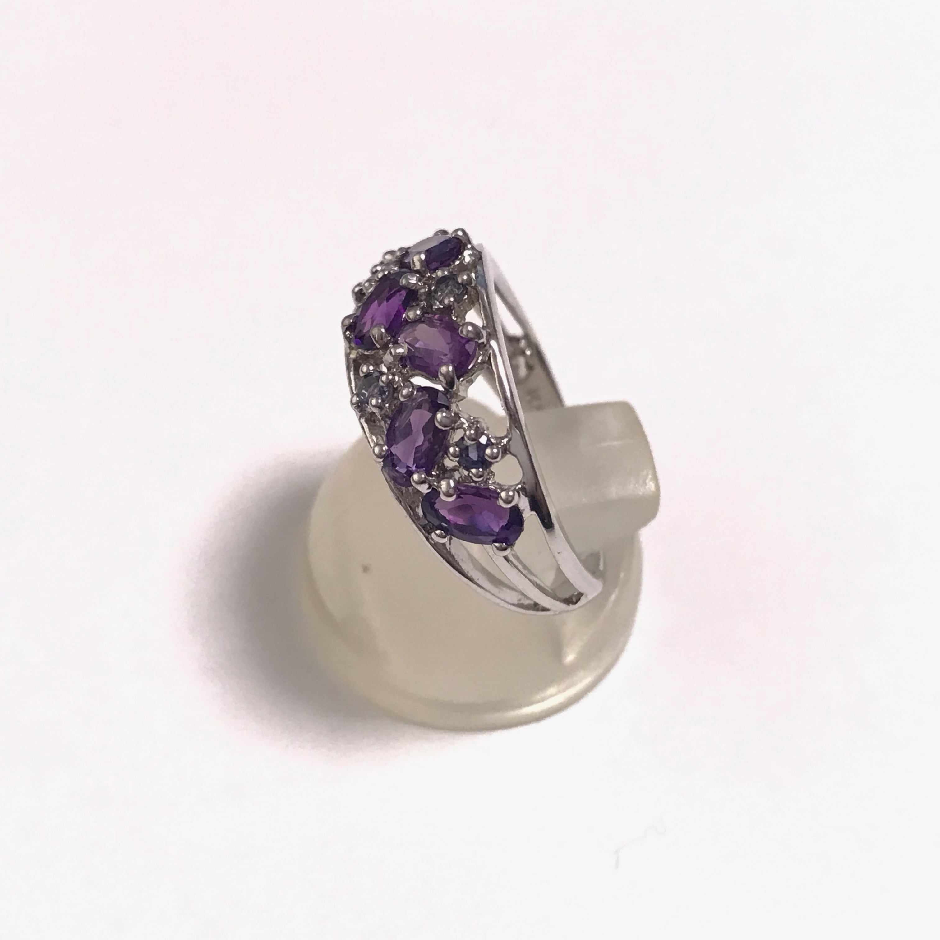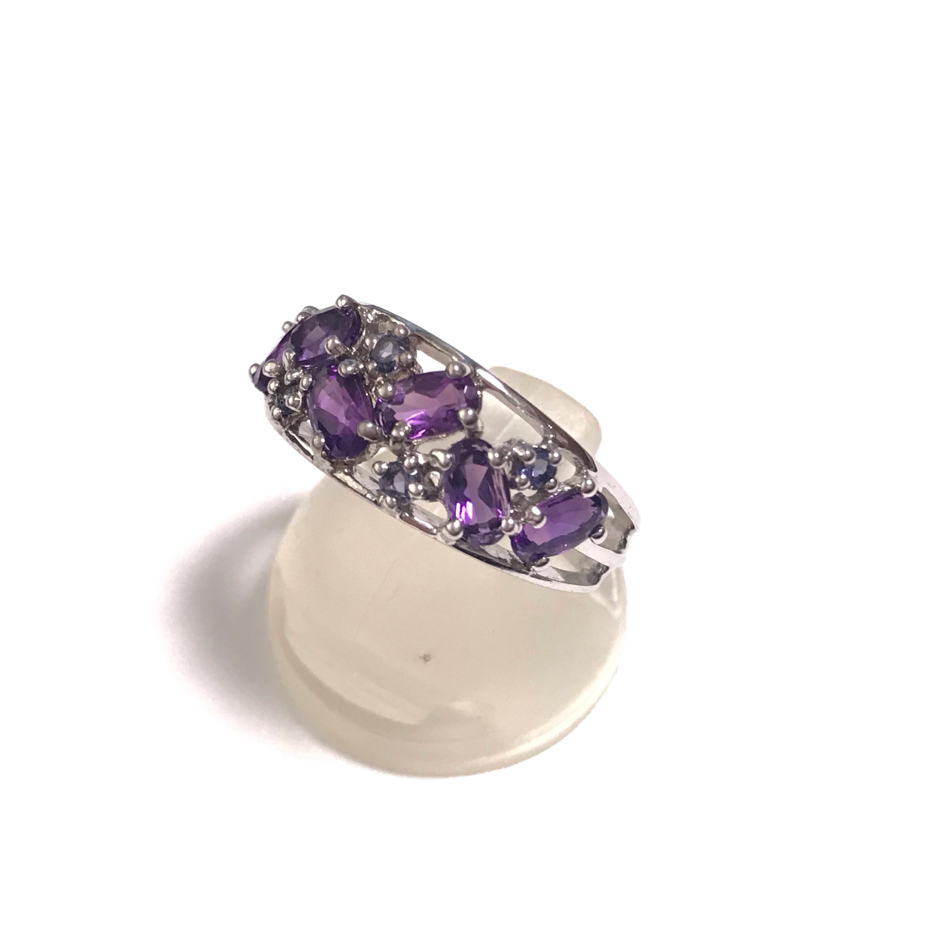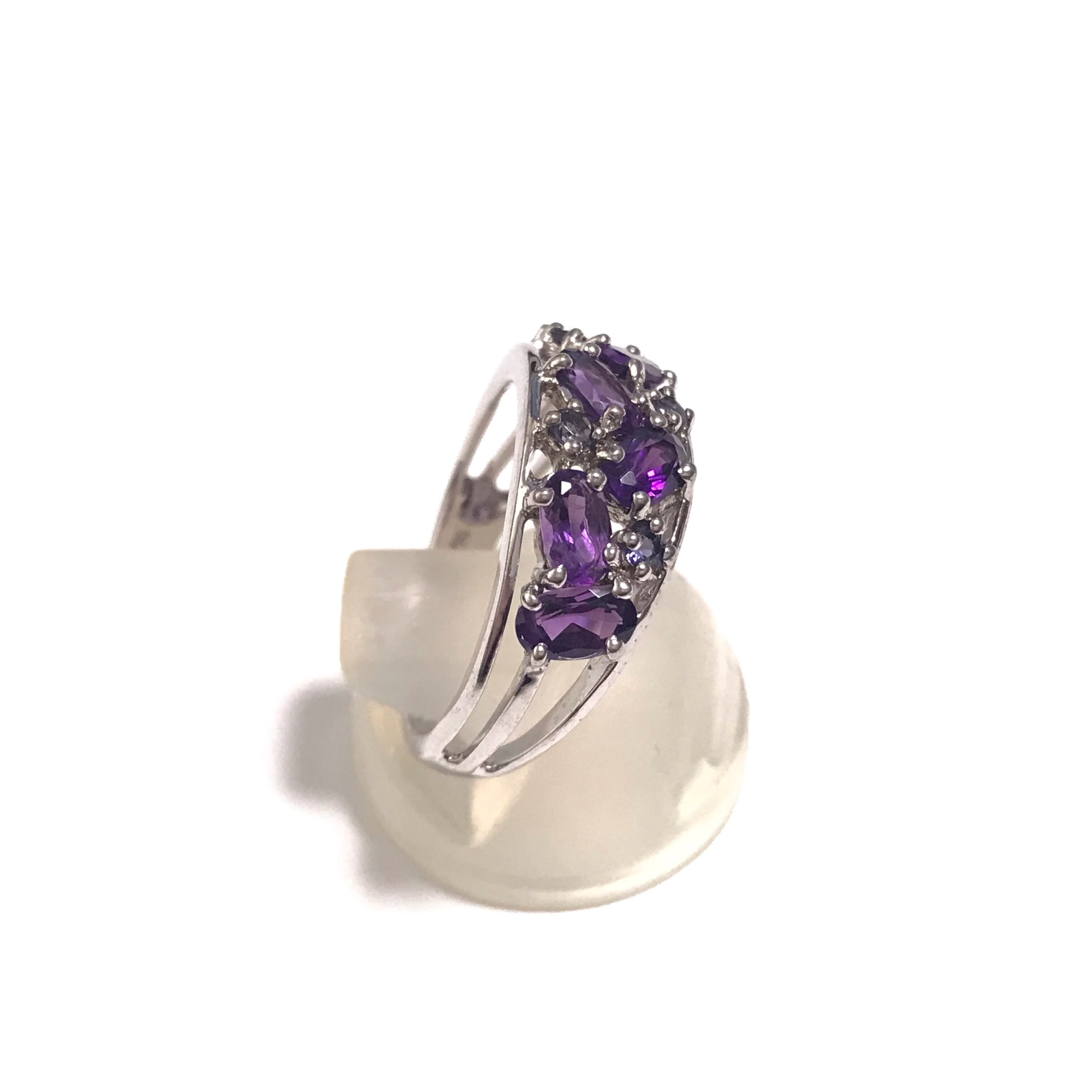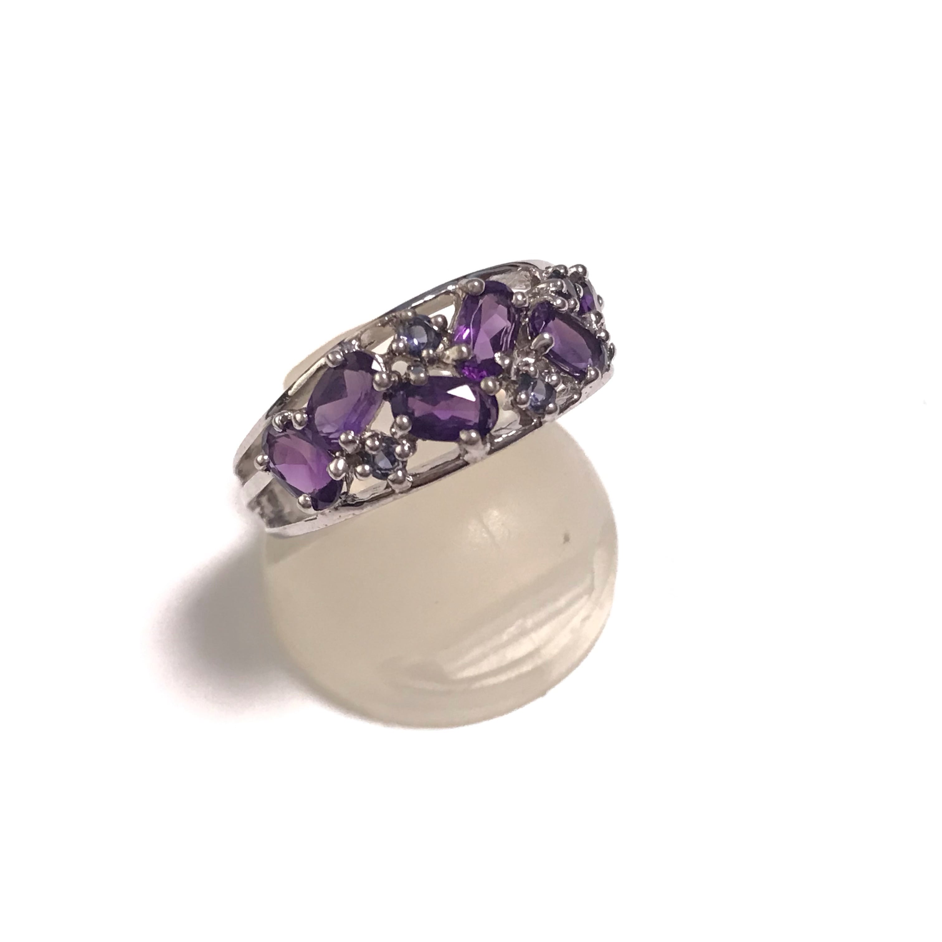 説明:アメジストやブルーの石があしらわれた、シルバー925のアクセサリーのリングです。