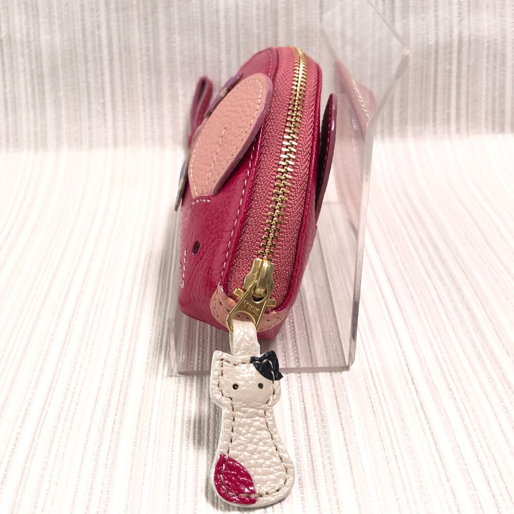 未使用 IBIZA イビサ ポーチ マウス ねずみデザイン 花付き ポーチ ファスナー部分には可愛い猫ちゃん付き ピンクカラー