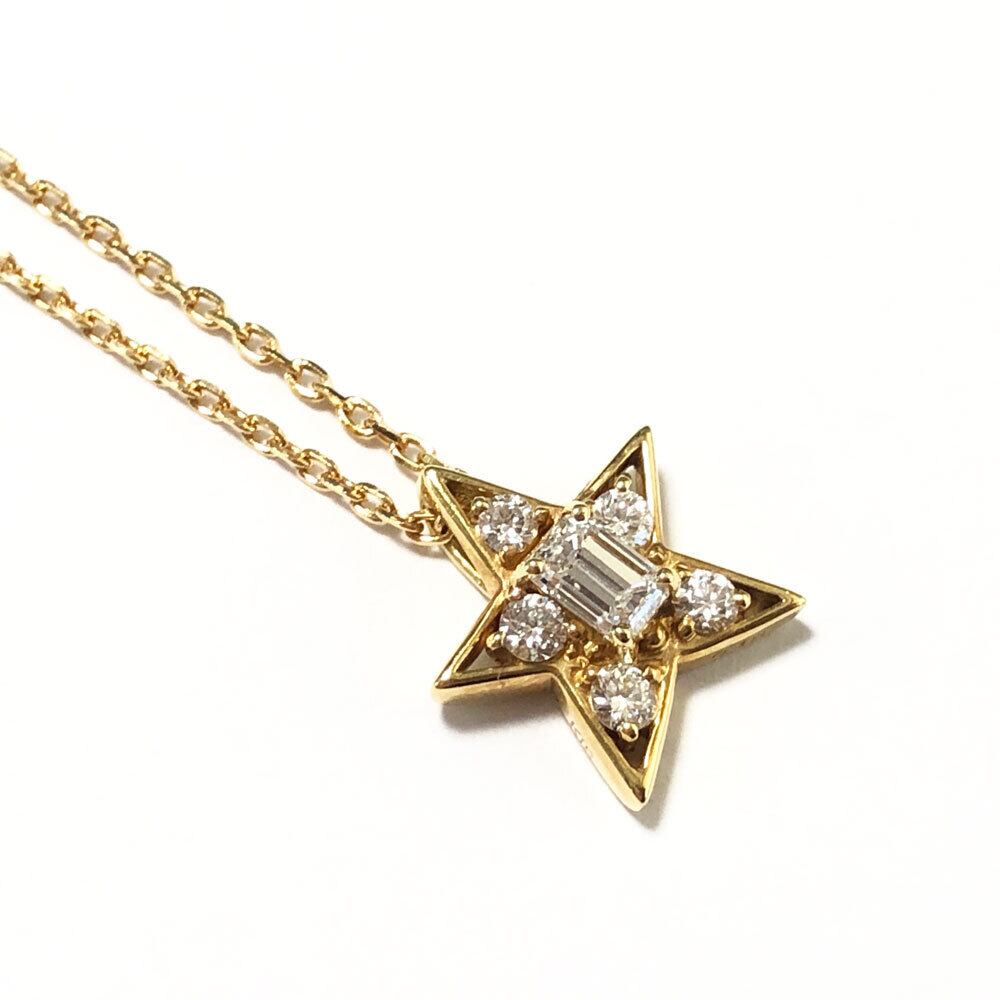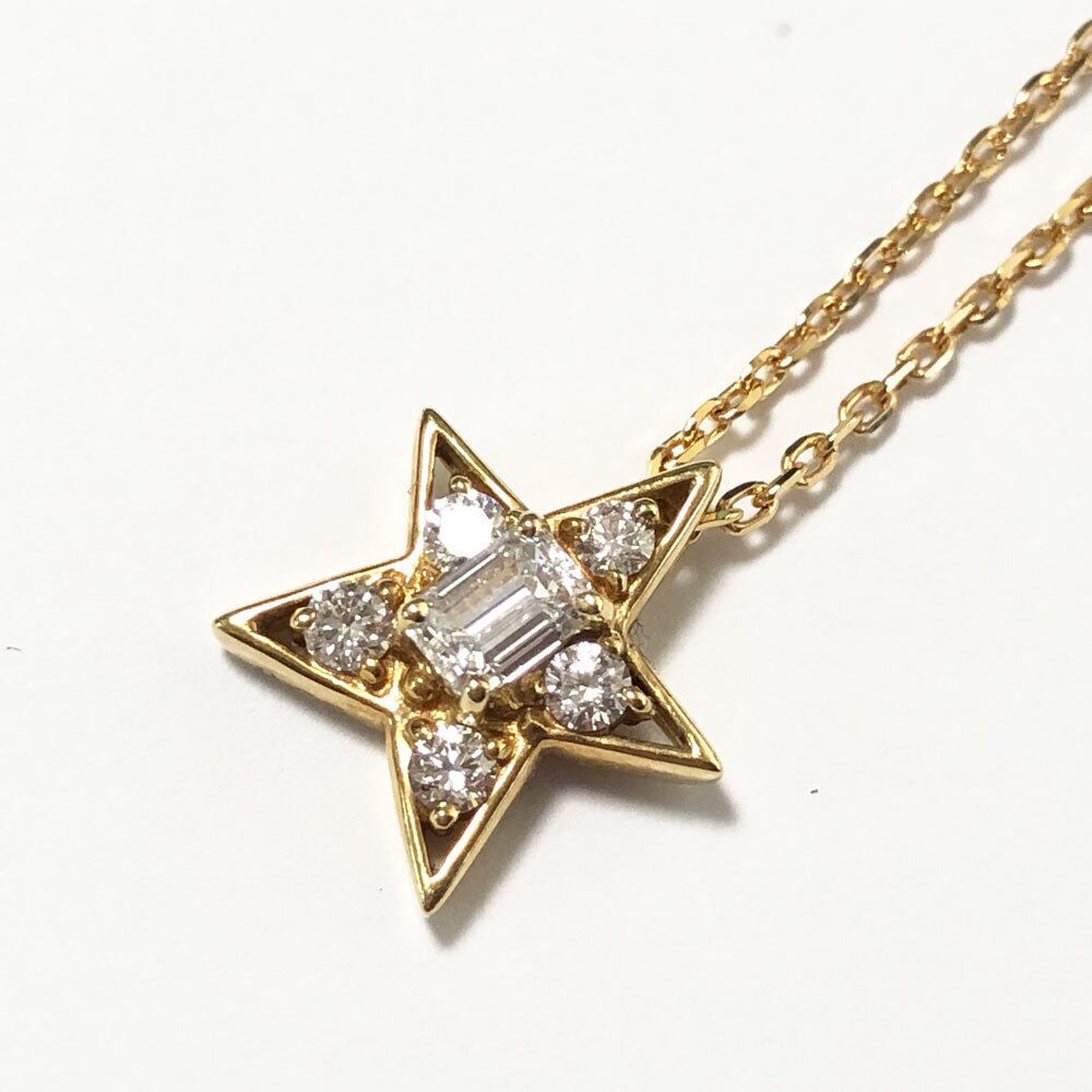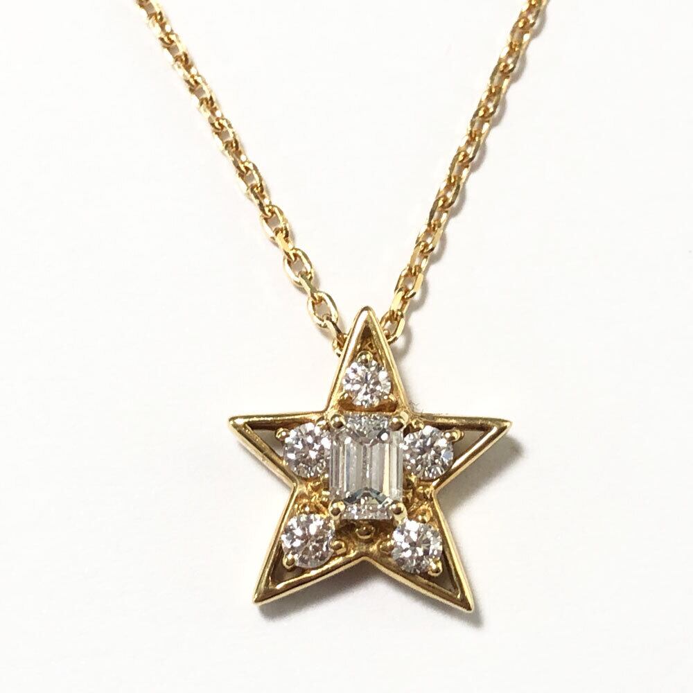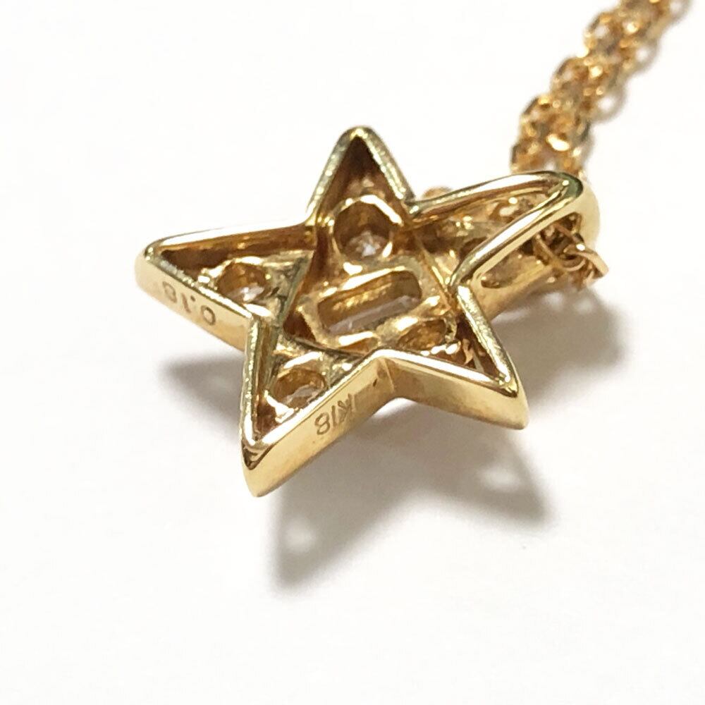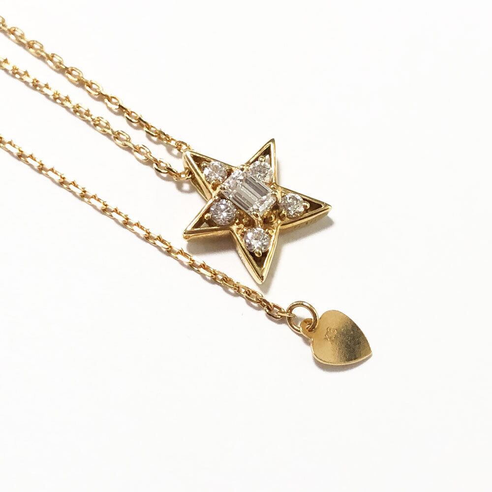 K18 ダイヤモンド0.25/0.18ct 星 デザイン スター ネックレス イエローゴールド 70㎝ スライドアジャスター