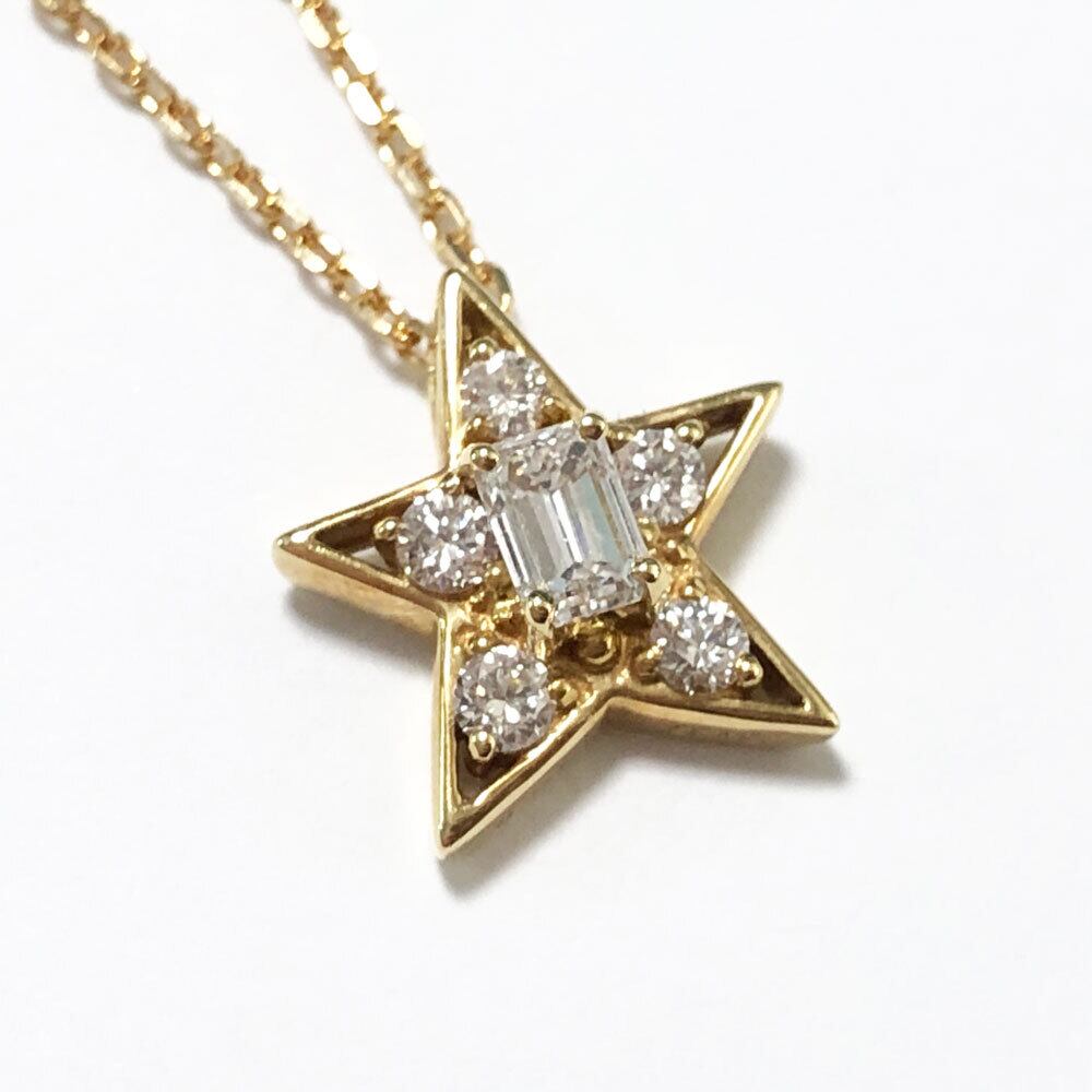 説明:可愛い星デザインのロングネックレスです。ダイヤモンドがスターの中に散りばめられた可愛いネックレスになります。
