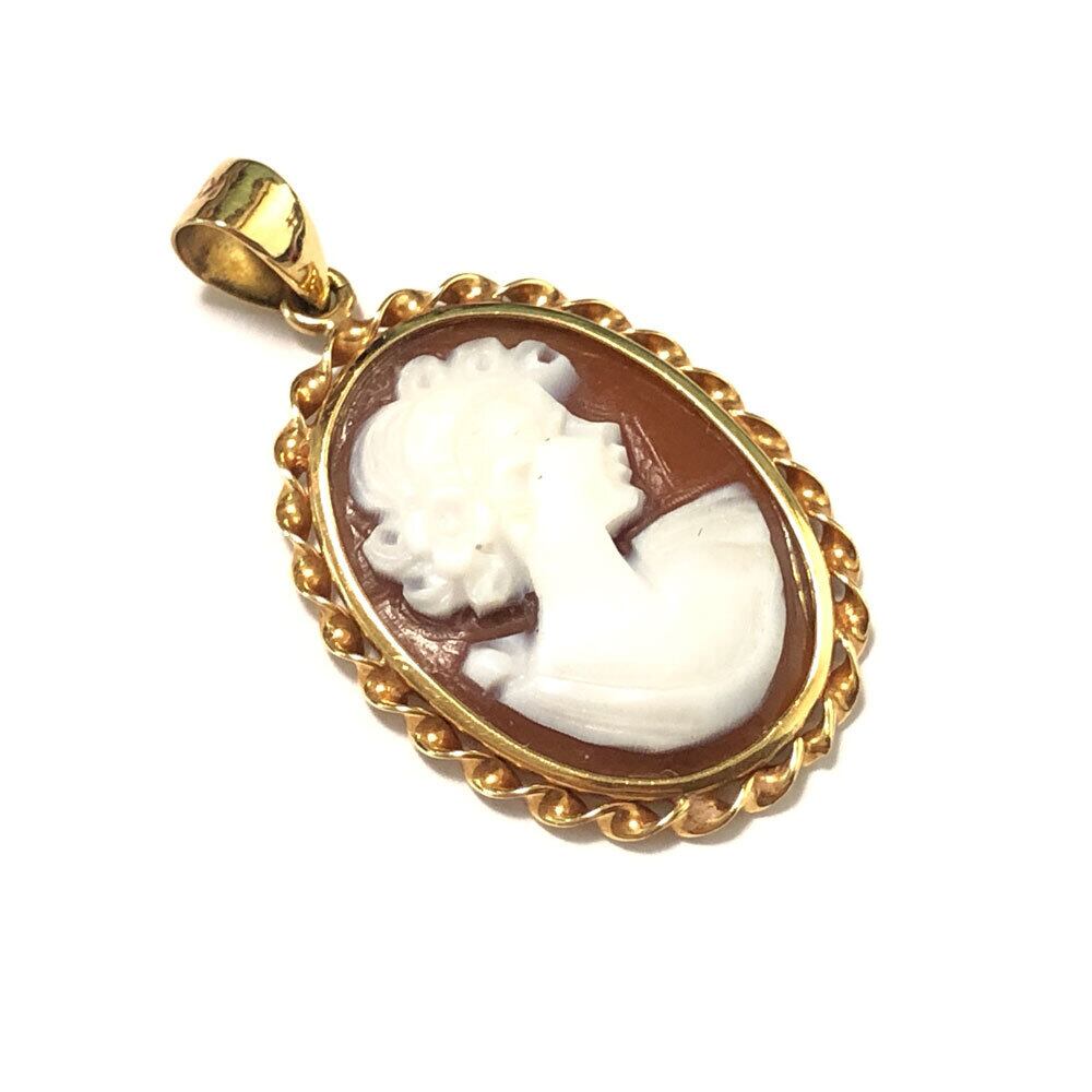 商品:K18 カメオ シェルカメオ イエローゴールド ペンダントトップ トップ 女性像 小さめトップ