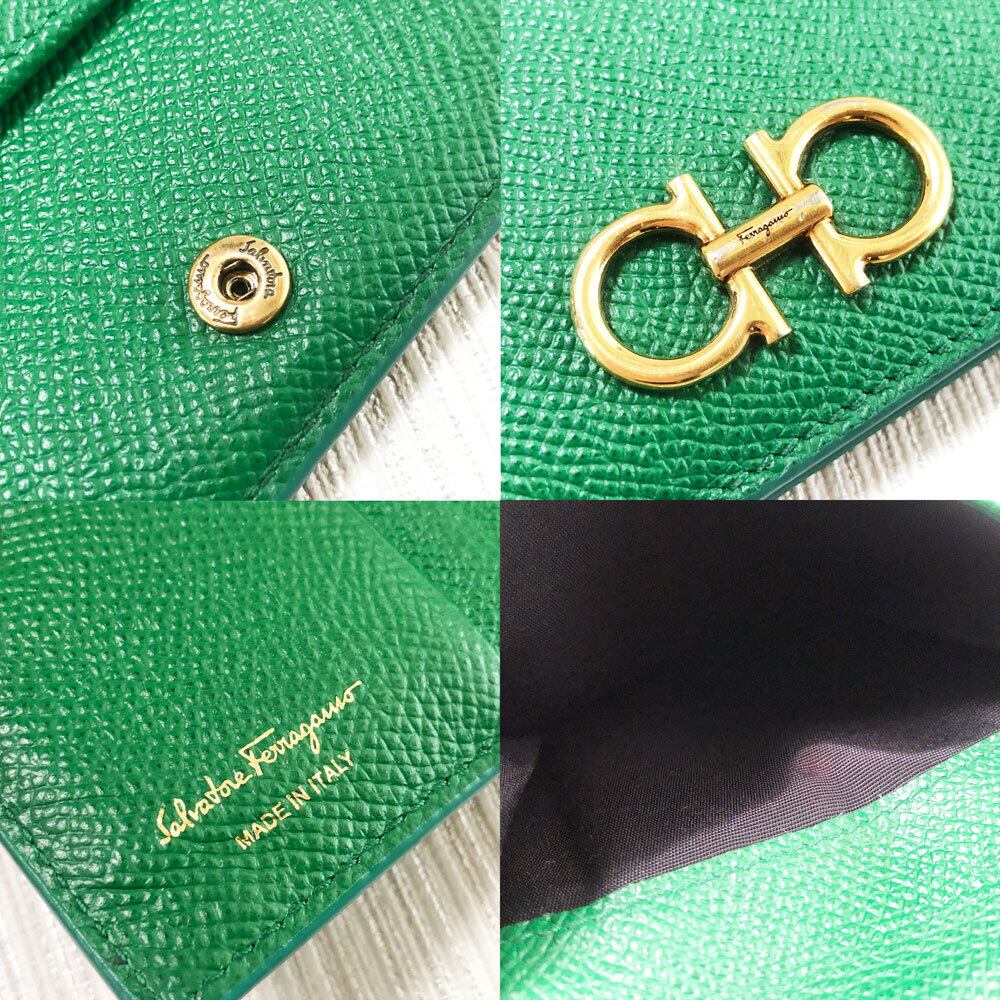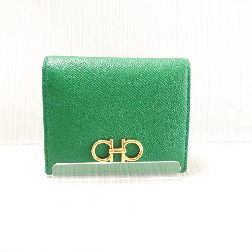SalvatoreFerragamo サルヴァトーレフェラガモ 2つ折り財布 グリーンカラー ガンチーニ金具 コンパクト財布