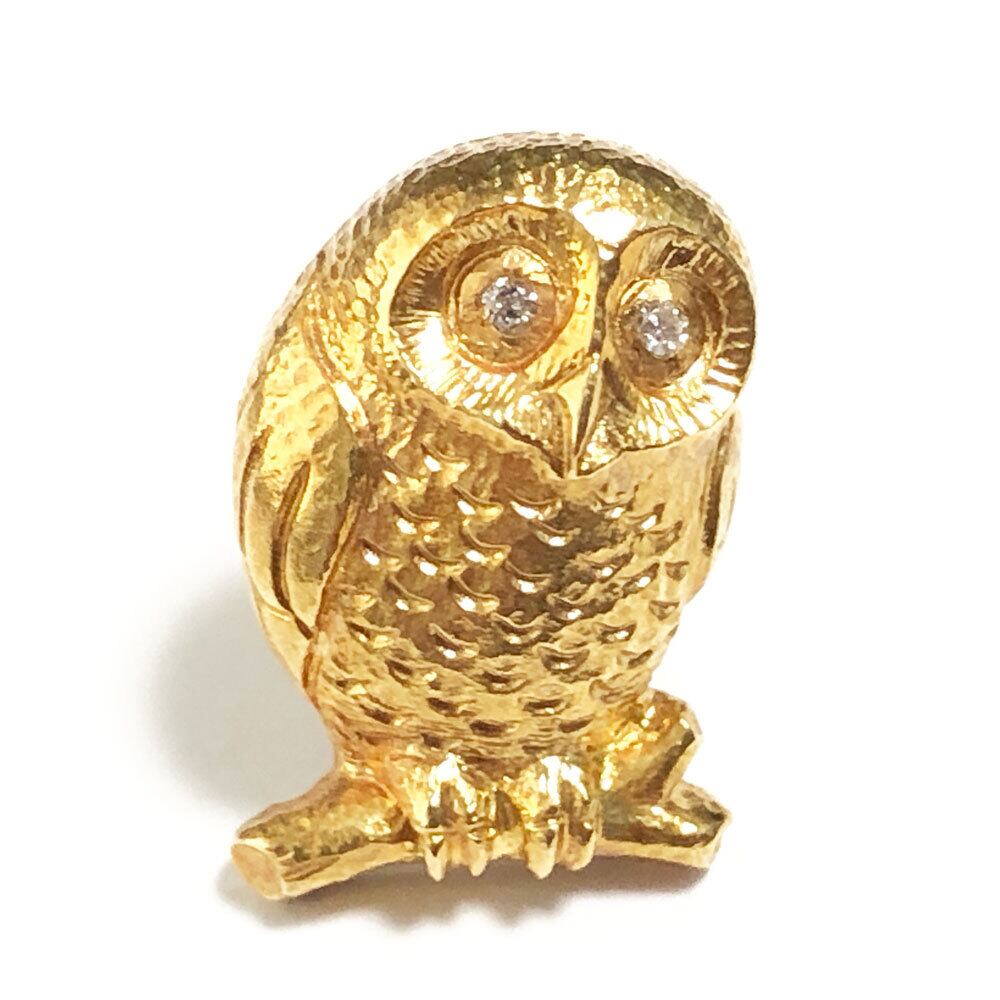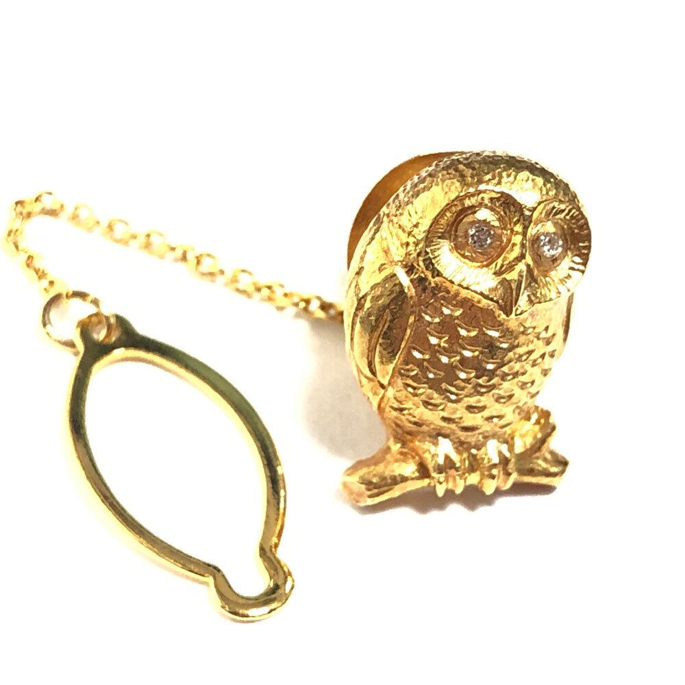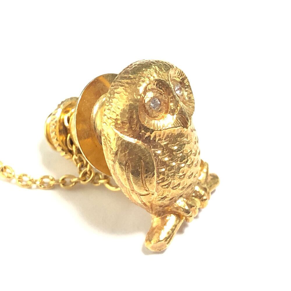 K18 ダイヤモンド フクロウ ふくろう 梟 デザイン ピンブローチ タイピン イエローゴールド