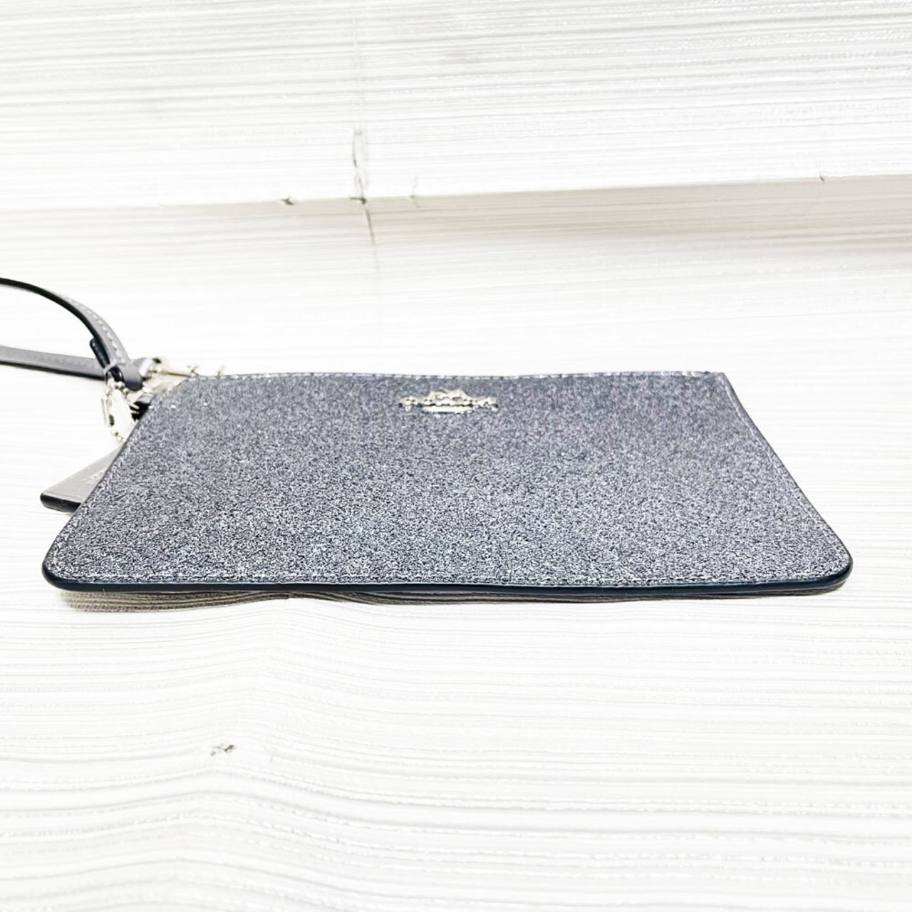 商品:未使用 COACH コーチ グリッター シルバー ラメ ポーチ スモール リスレット F64670
