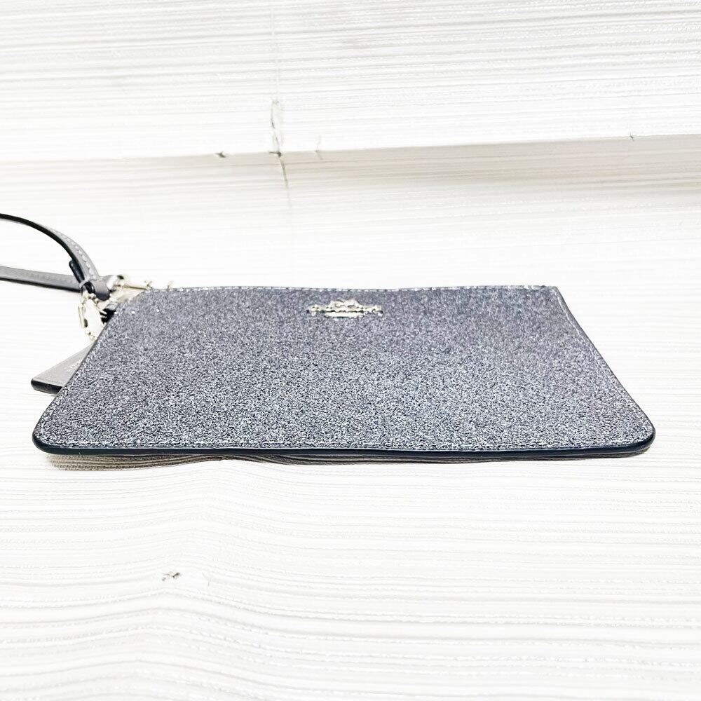 未使用 COACH コーチ グリッター シルバー ラメ ポーチ スモール リスレット F64670