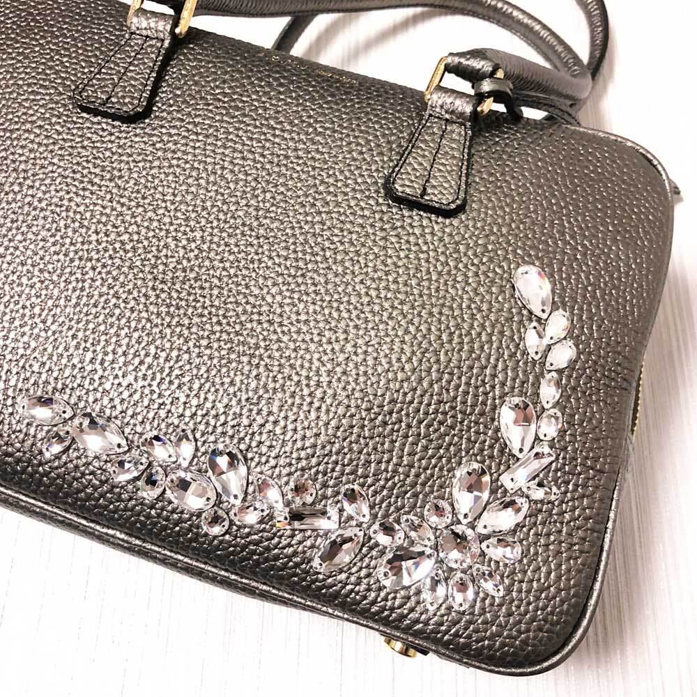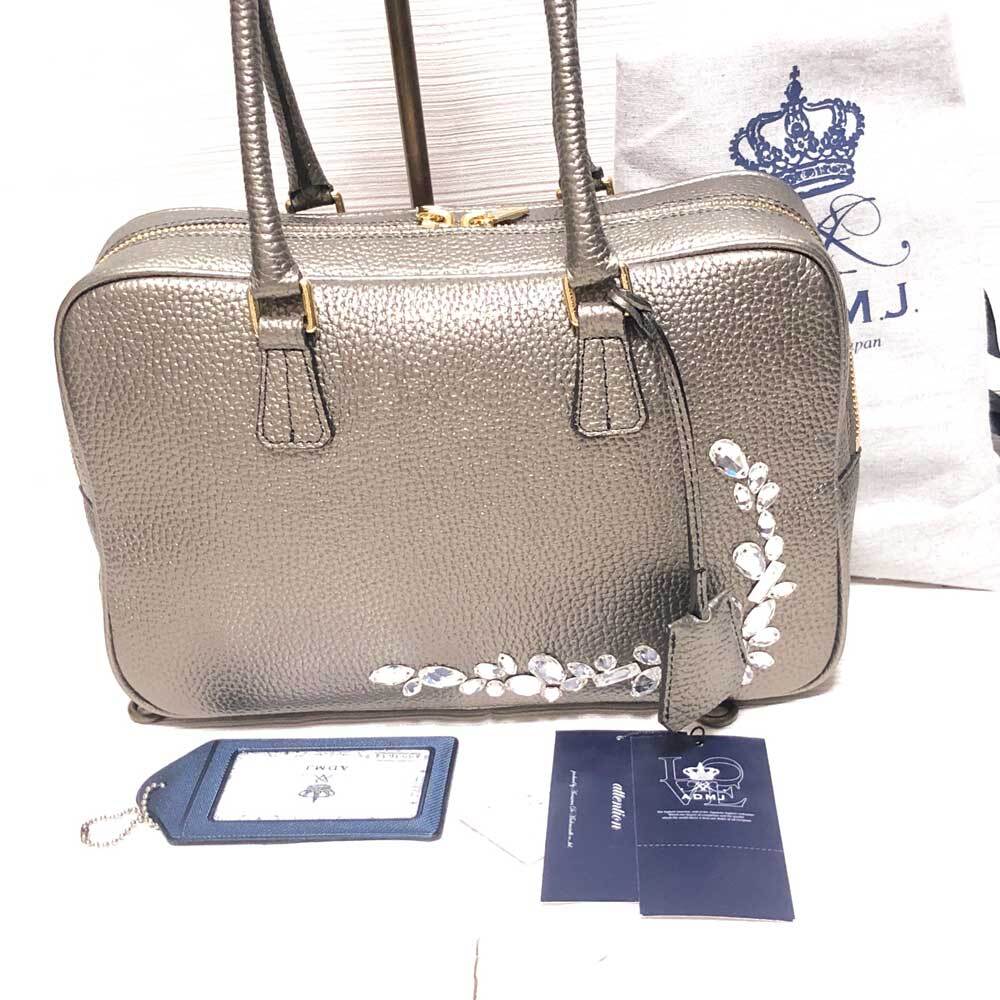 説明:A.D.M.Jの定番ボストンバッグ。ビジューがきらめく素敵なボストンバッグです。背面ポケットも有り使いやすさも◎