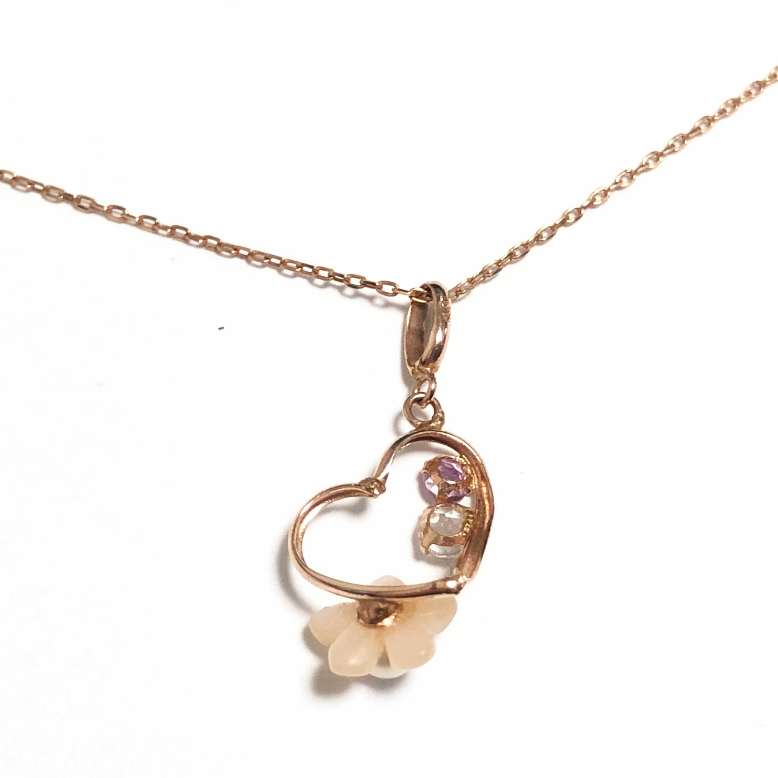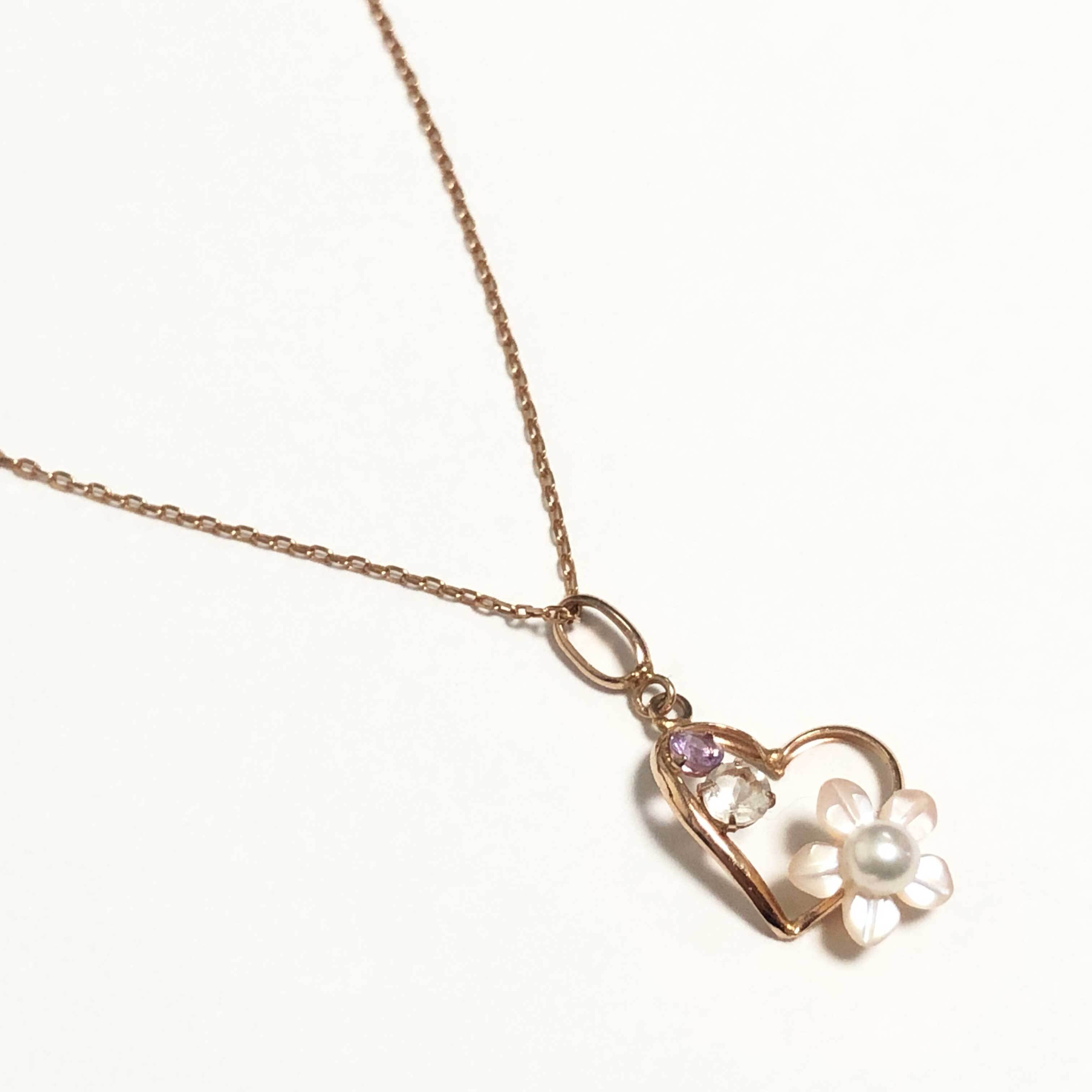 K10 シェル パール アメジスト お花ハートデザイン ピンクゴールド ネックレス K10PG